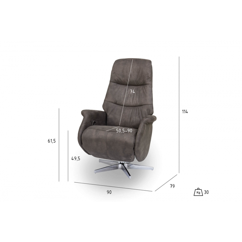 Manuel tilbagelæning fra 82° til 156° med udtrækkelig fodstøtte og justerbar nakkestøtte.