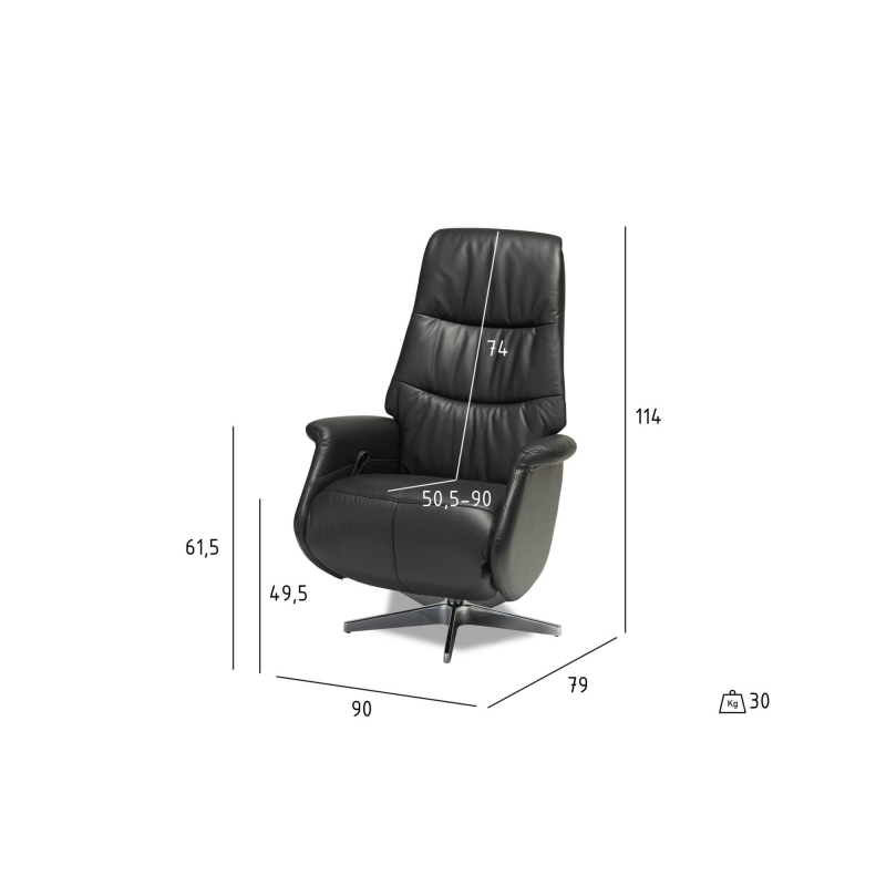 Kan lænes tilbage fra 82° til 156°, med udtrækkelig fodstøtte og justerbar nakkestøtte.